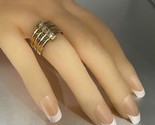 14K Yellow Gold 7 Days Semanario Ring Wide Multi Bands w/ Clear Stones Size 7.25