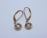 - 14K Yellow Gold Bezel Set Round Clear Stone Dangle Earrings 1.7gr