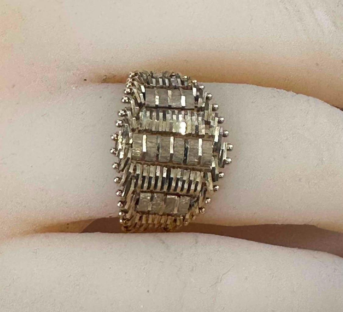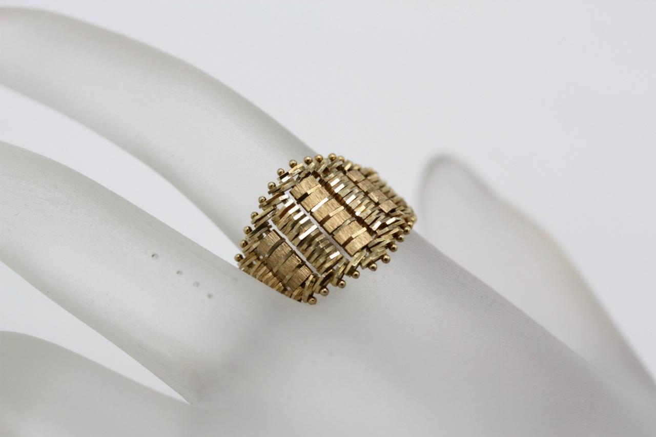 Vintage 14K Yellow Gold Flexible Mesh Riccio Band Diamond cut/ Satin Finish Ring Size 7 (4.5 grams)