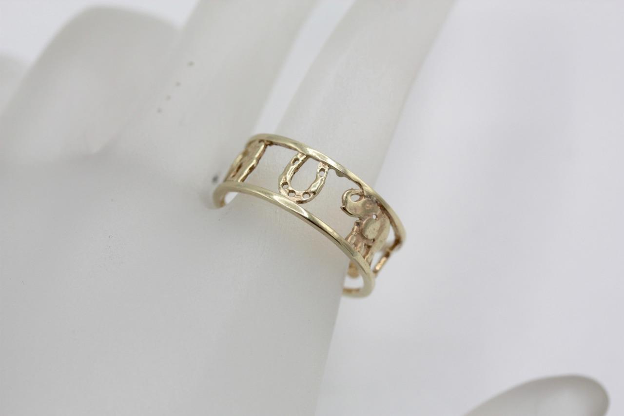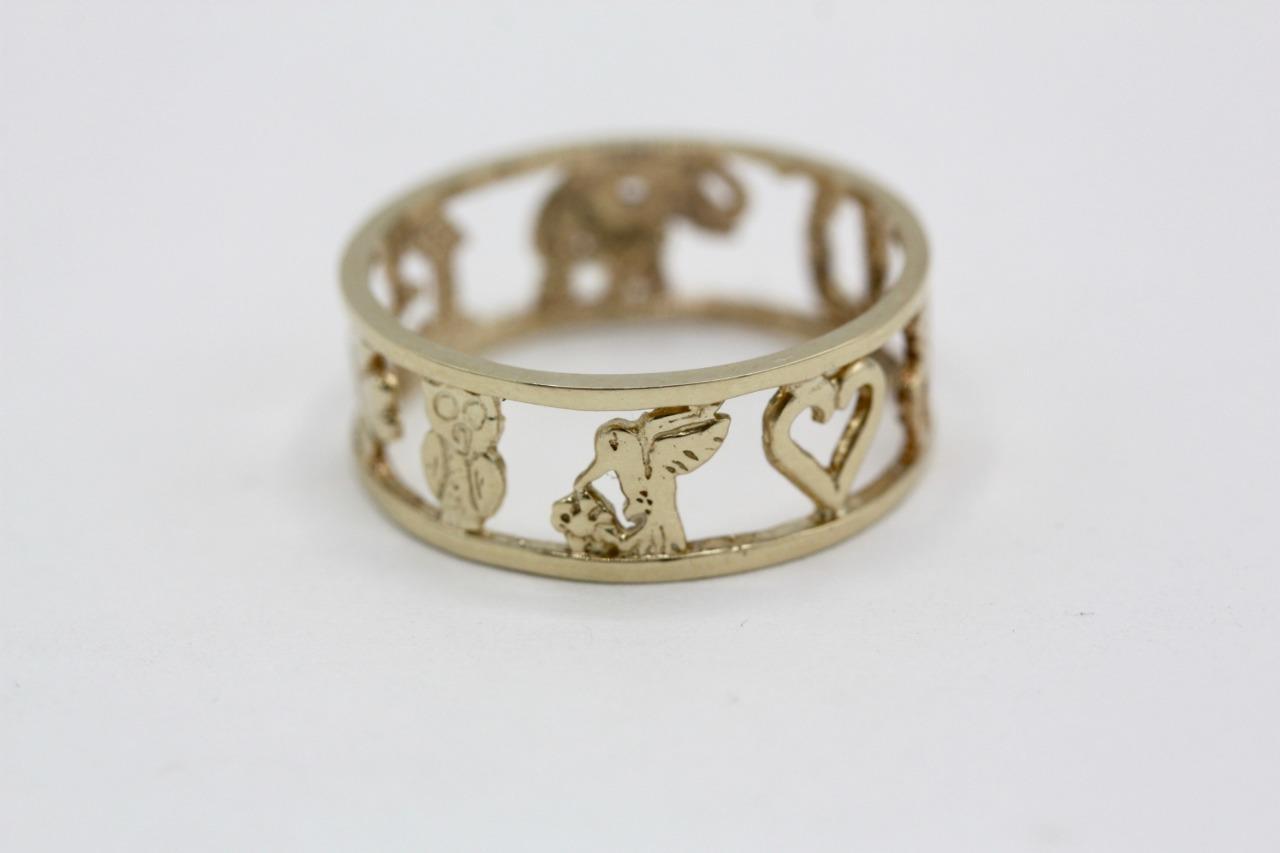 - 14K Yellow Gold Lucky Symbols Clover, Horseshoe, Owl, Elephant, Hummingbird Ring