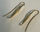 - 14K Yellow Gold Ribbed Center Pin Dangle 1” Pierced Earrings