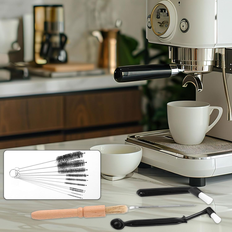 Diverse Designs: Our espresso tool set offers a variety of designs to meet all your coffee cleaning needs. Each style targets a specific area, ensuring that coffee grounds and residue are cleaned without damaging your equipment.