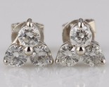 14k White Gold 0.90 carat Three Diamond Cluster Stud Earrings Gorgeous Gift