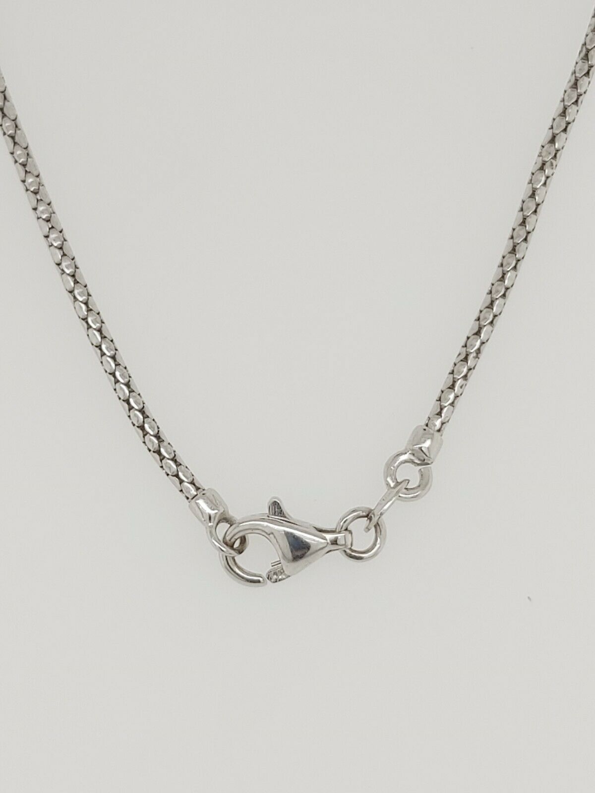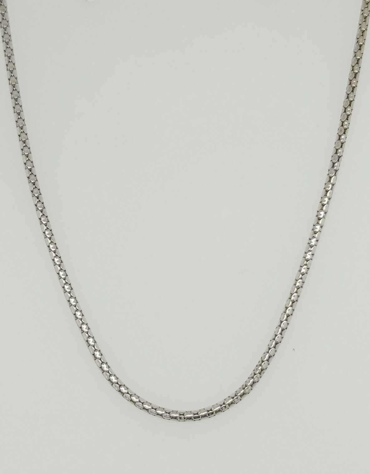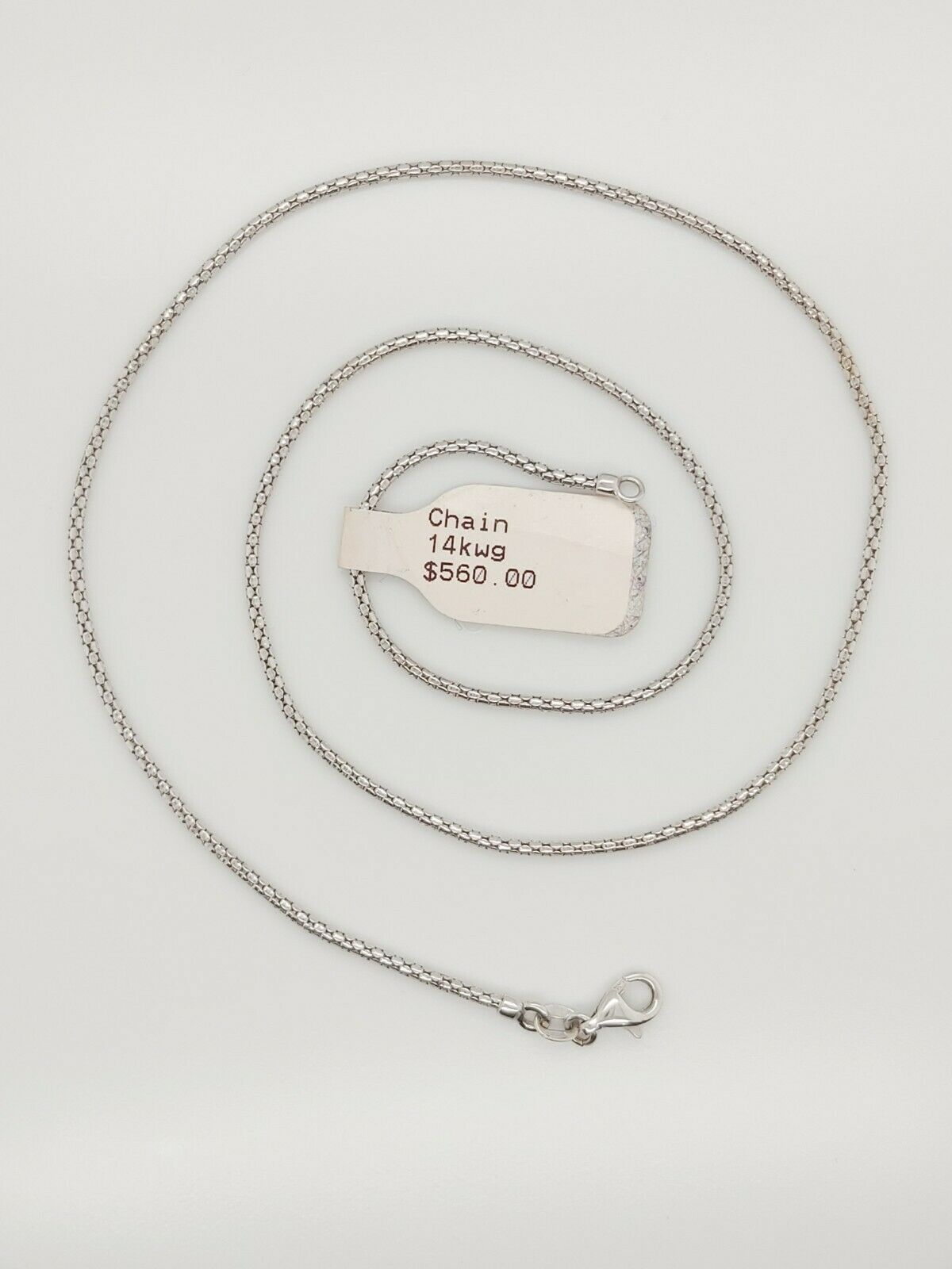 Here we have a beautiful 14k white gold link chain. The chain is 18" long and 1.5 millimeters. This is the perfect gift for your loved one.The total weight of gold is approximately 4.1 gr. Buy with confidence, we only sell top quality items.Thanks for looking and have a great day.