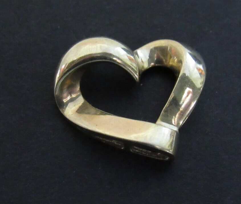 14k Yellow Gold Open Heart Pendant Hidden Bail Elegant Valentine's Gift 1.3g