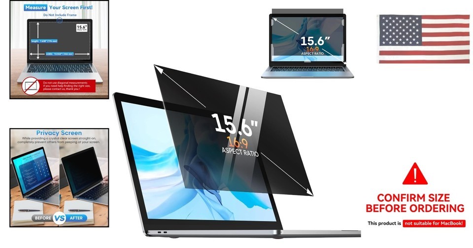 - 15.6 Inch Laptop Privacy Screen for 16:9 Aspect Ratio Widescreen, Removable A...