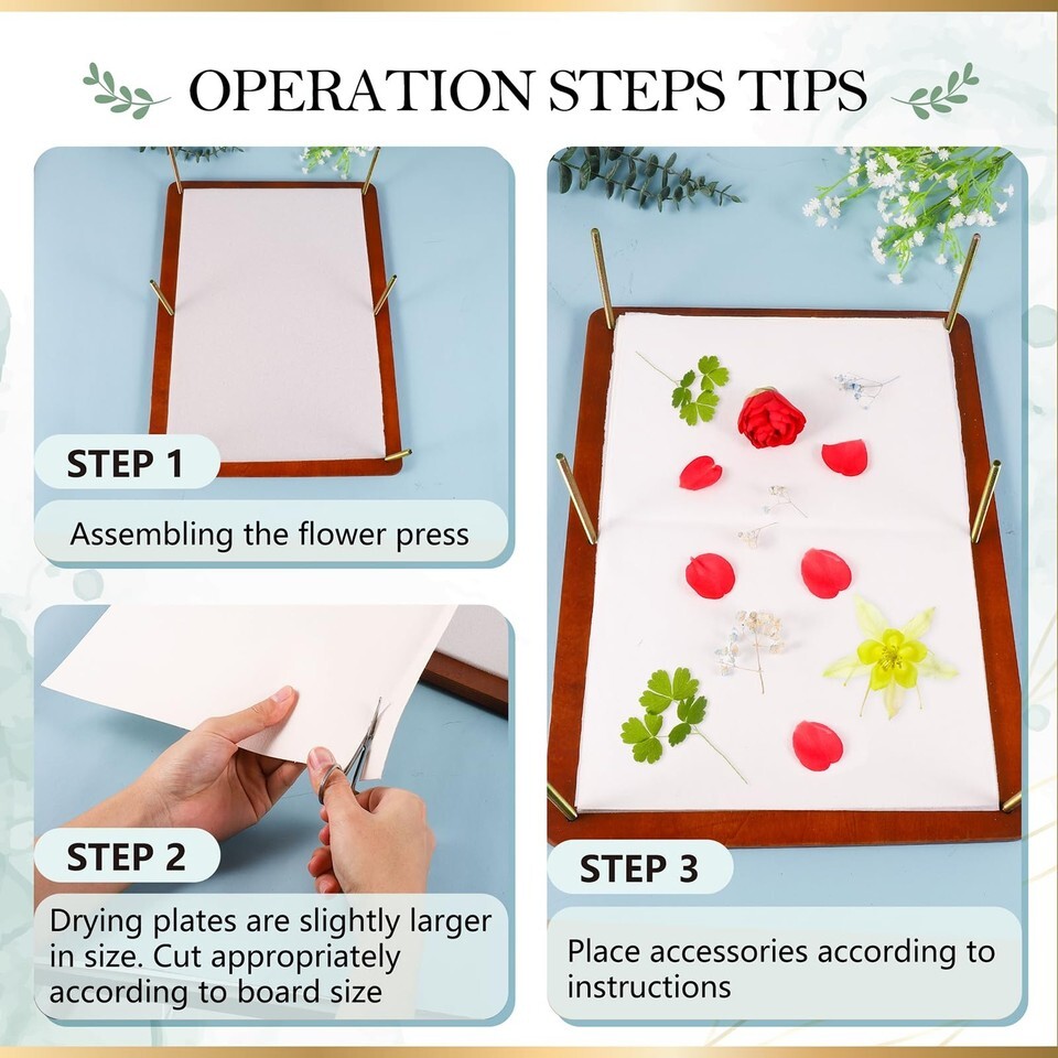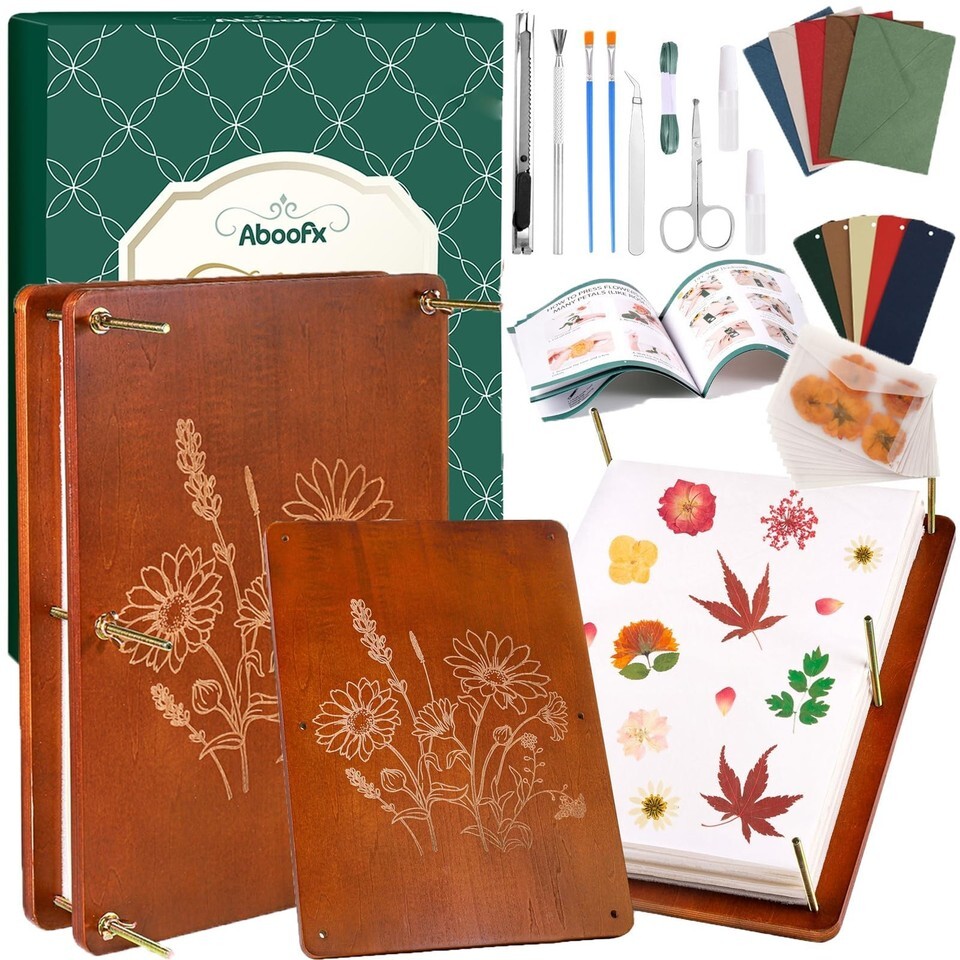Comprehensive Pressing Kit: Coming with 2 wooden pressing plates, 6 sponge sheets, 6 drying plates, 30 PCS accessories material package, 30 lining papers, 1 seven needles, 1 tweezer, 1 scissors, 1 craft knife, and 1 instruction. This complete kit is ideal for beginners and experienced flower pressers