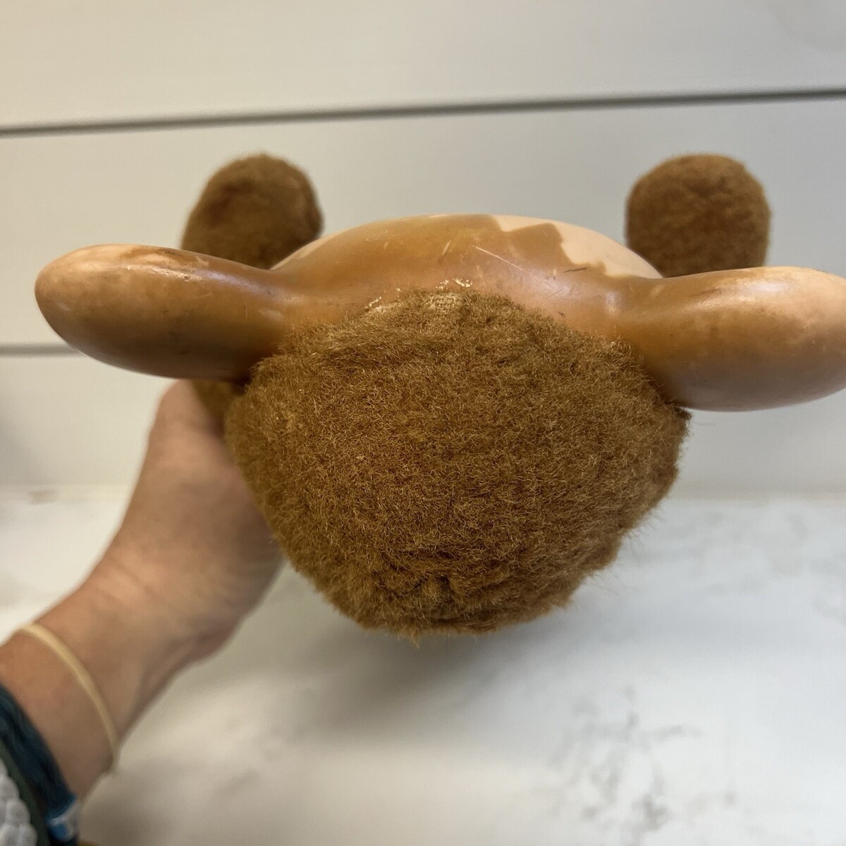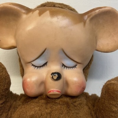 The 15" Knickerbocker Pouting Teddy Bear plush toy is a charming vintage piece from the 1950s, featuring a rubber face that adds a unique touch to its appearance. Made in the United States, this medium-sized bear is great for collectors of vintage toys or anyone nostalgic for classic stuffed animals. Its pouting expression makes it a special addition to any teddy bear collection, showcasing the character family of the beloved Pouting Bear.