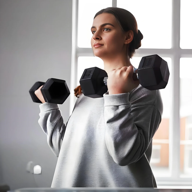 Gianna Hex dumbbells with rubber coating are ideal for various exercises and fitness routines. Available in multiple sizes, they offer a secure grip, comfort, durability, and versatility. Perfect for both home and commercial gyms, these hand weights are essential for building strength and improving overall fitness levels.