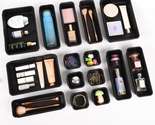 15 Piece Drawer Organizer Set, 3 Size Interlocking Plastic Storage Bins for Office Supplies, Jewelry Makeup Vanity, Bathroom Kitchen, Home Organization Closet, Gadgets Small Items, Black