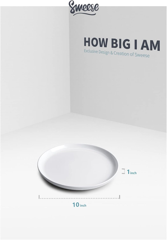 PERFECTLY COMPLEMENTS ANY TABLE SETTING - These 10-inch plates complement any table setting! Perfectly sized at every meal, these plates gracefully hold your main dishes and sides. Ideal for daily family dinners and special occasions, they're the quintessential choice for every American home and restaurant. Discover the versatility of Sweese dinner plates.