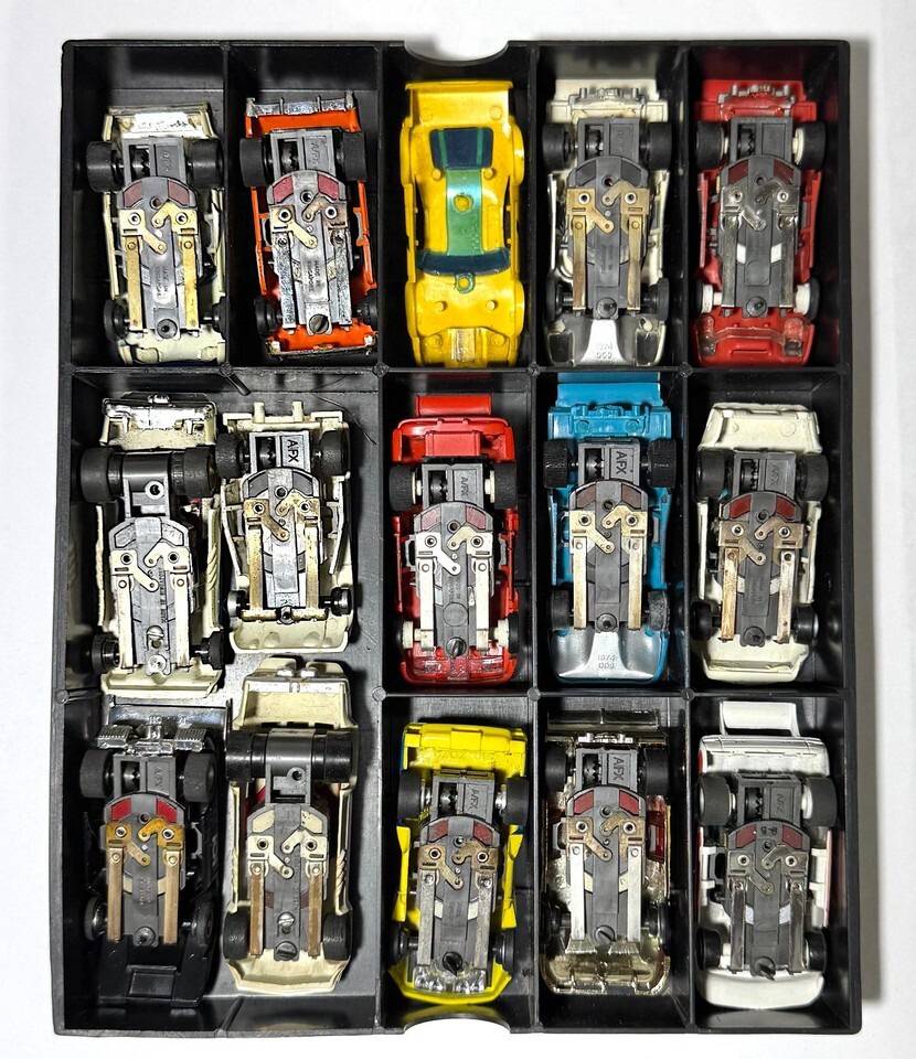 - 15pc 1970s Vintage Aurora AFX Magnatraction HO Slot Car Original Case Lot710