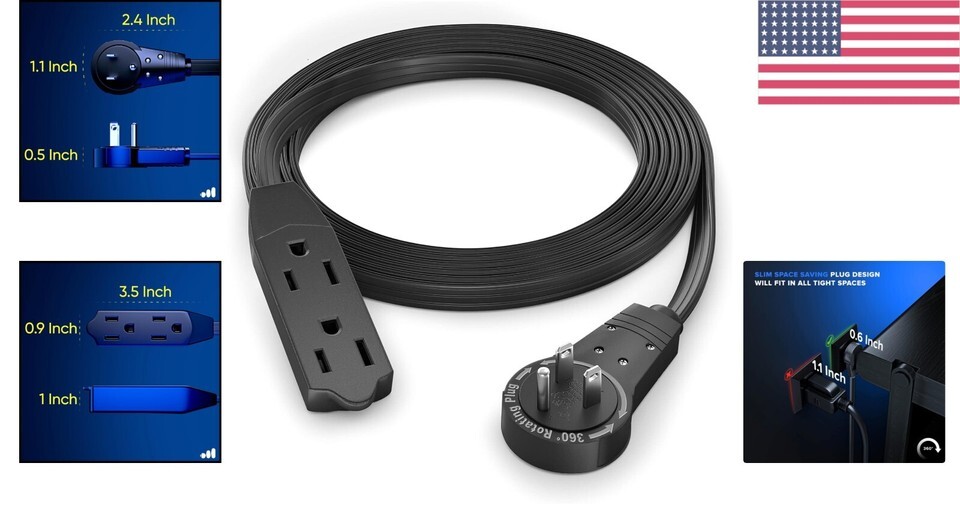 Don't let cluttered outlets hold you back ? elevate your power experience today by ordering your 16 AWG 360 Rotating Flat Plug Extension Cord!