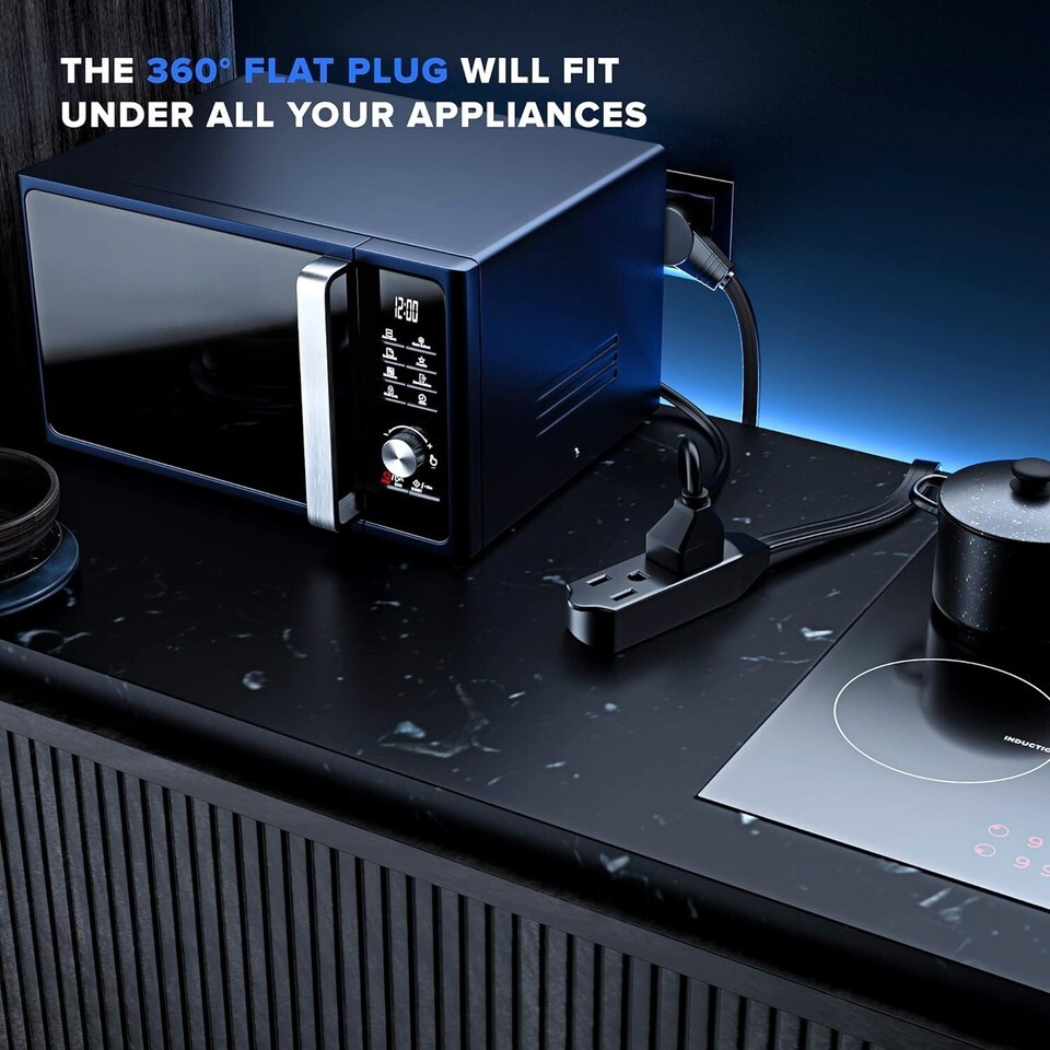 Flat Plug Design: Expertly crafted for tight spaces behind furniture, bookshelves, desks, or appliances, ensuring you can utilize every outlet.
