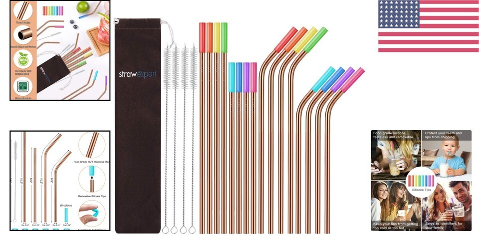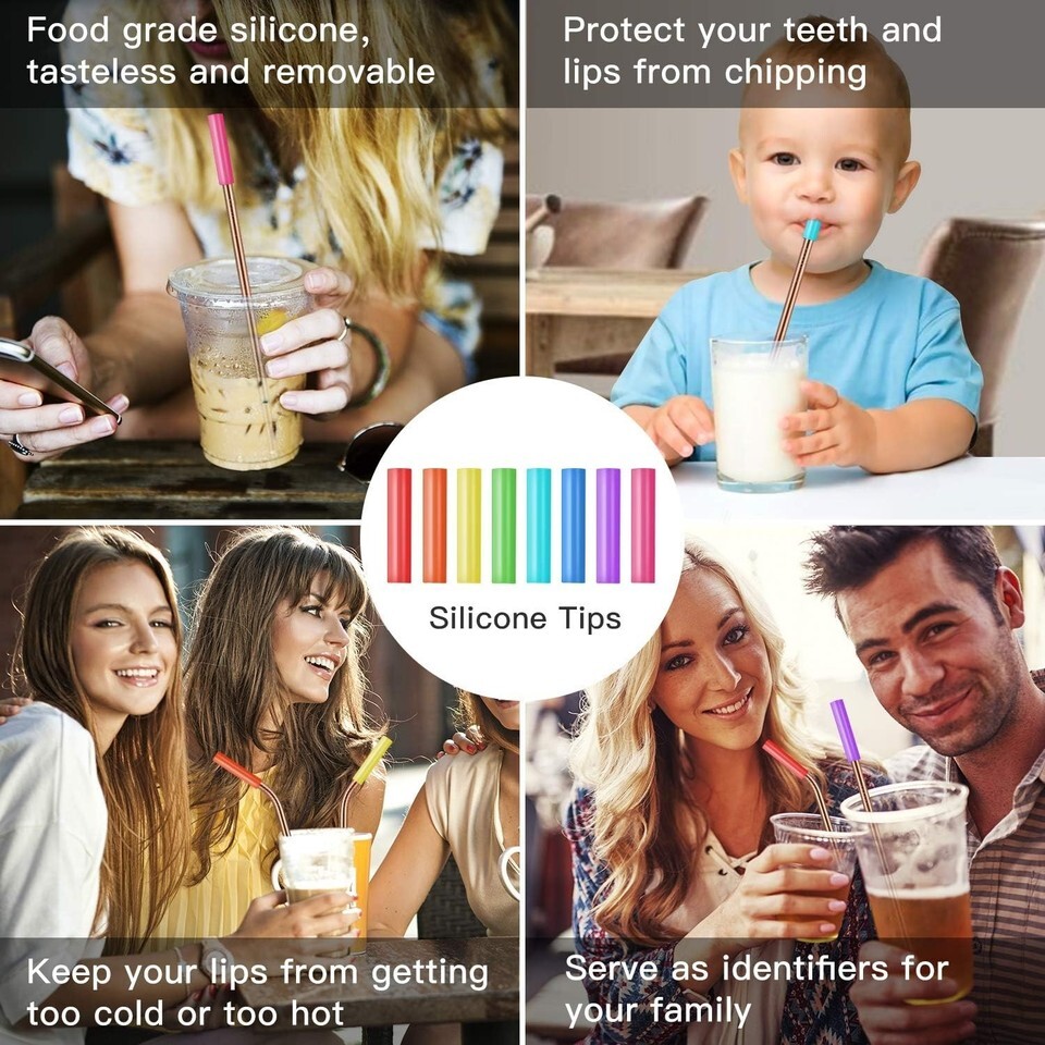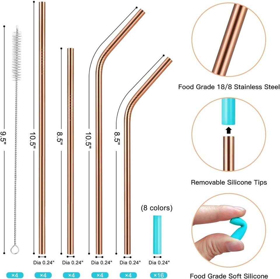 Embrace the elegance and sophistication of our Rose Gold Reusable Straws, meticulously crafted from the highest quality stainless steel and thoughtfully accompanied by vibrant silicone tips for a cozy touch. For over eight , we have dedicated ourselves to perfecting these eco-friendly tools. Our commitment to materials results in stone-cold beauty?these straws aren't just a functional accessory; they are a statement.