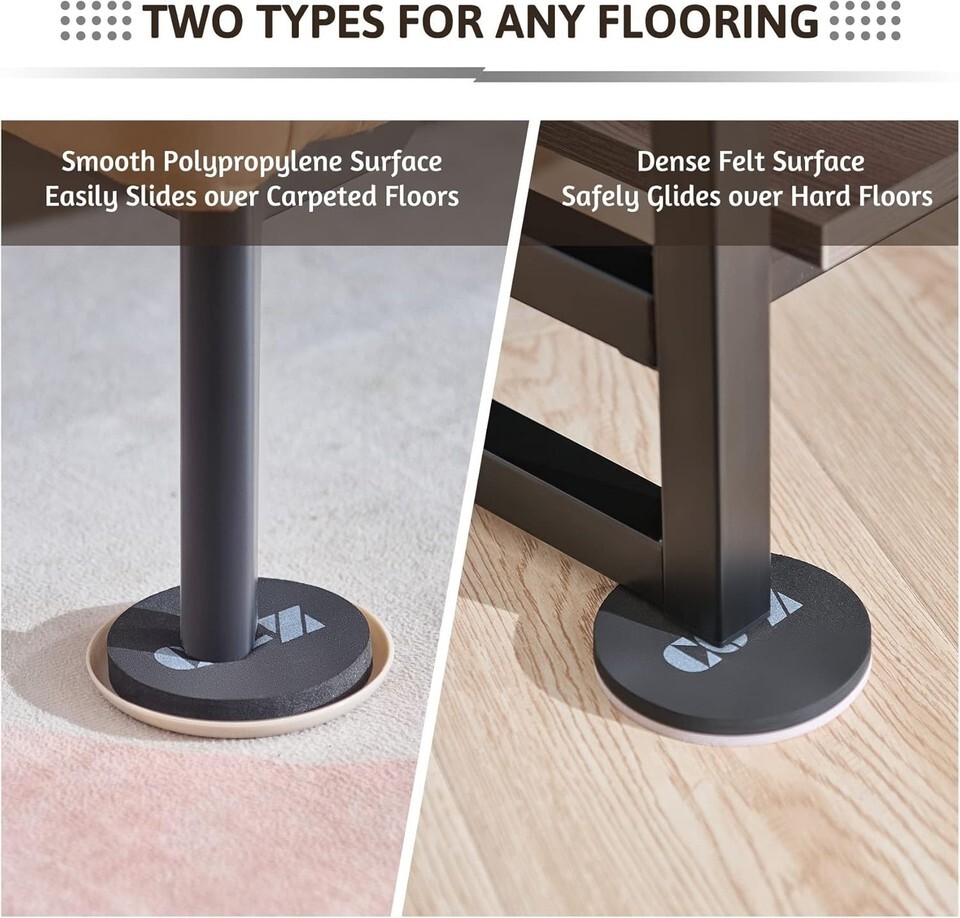 Made from a combination of 8 polypropylene and 8 felt sliders for versatile surface coverage.