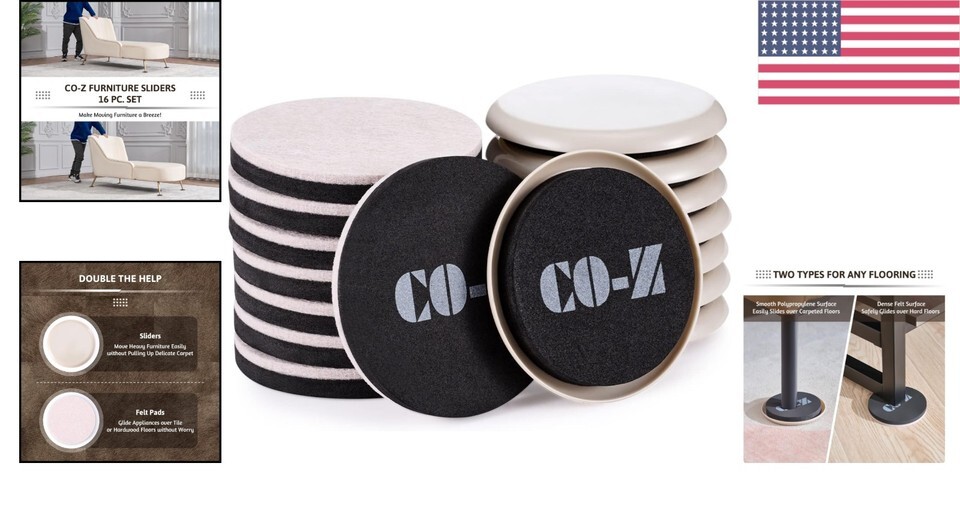 - 16-Piece Felt Furniture Sliders - 3.5" Heavy-Duty Gliders for Home Protection