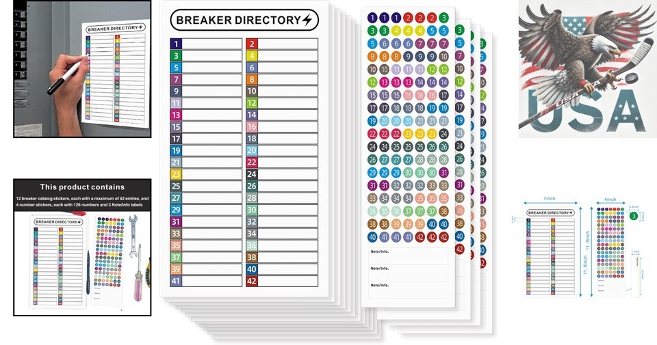 Reusable Tear Resistant: Each set includes 12 breaker catalog stickers with up to 42 entries each, 4 number stickers with 126 numbers and 3 note labels, offering durability for repeated use. Share and store as needed!