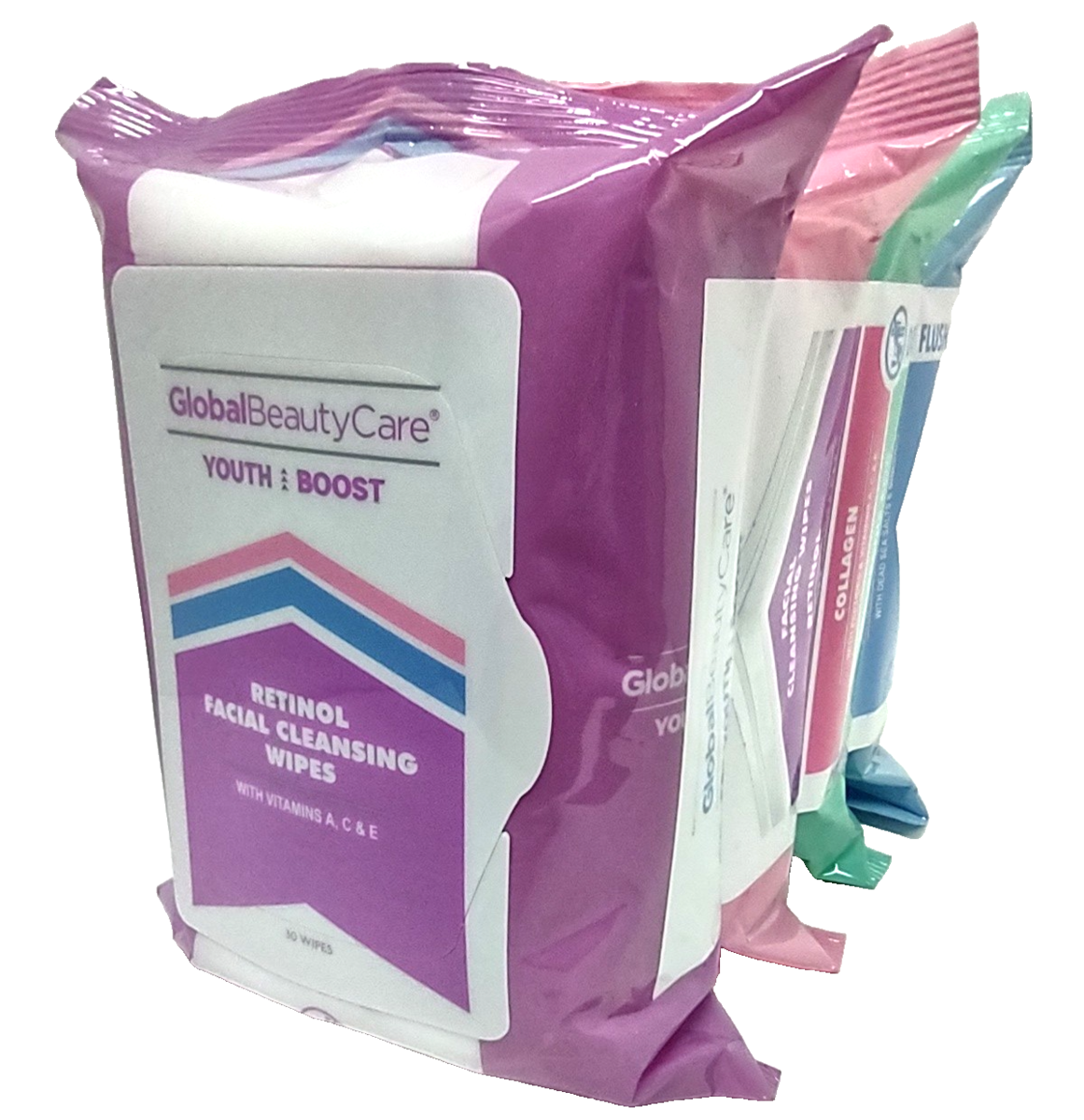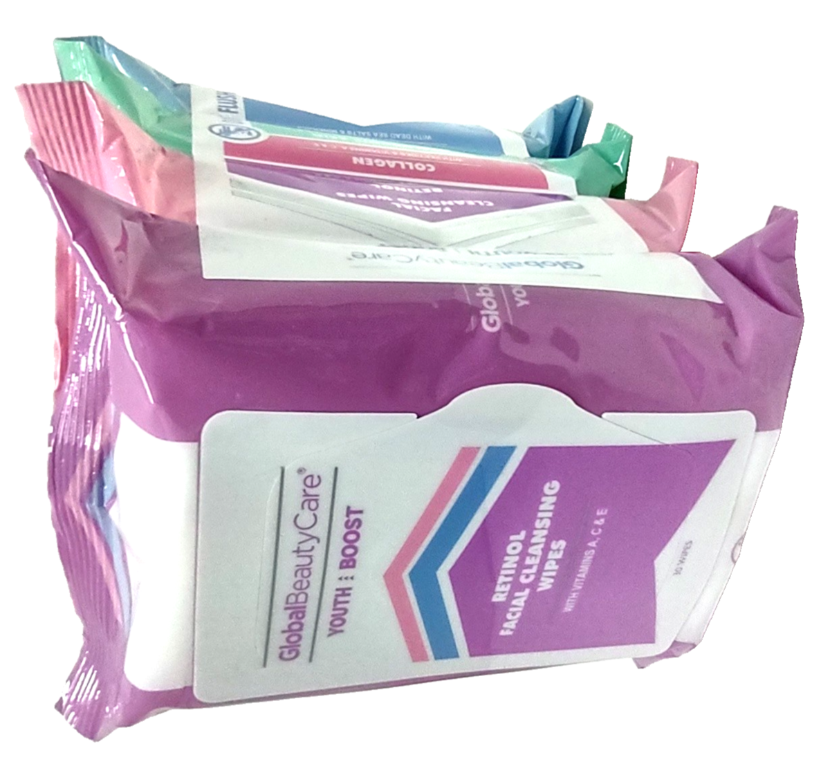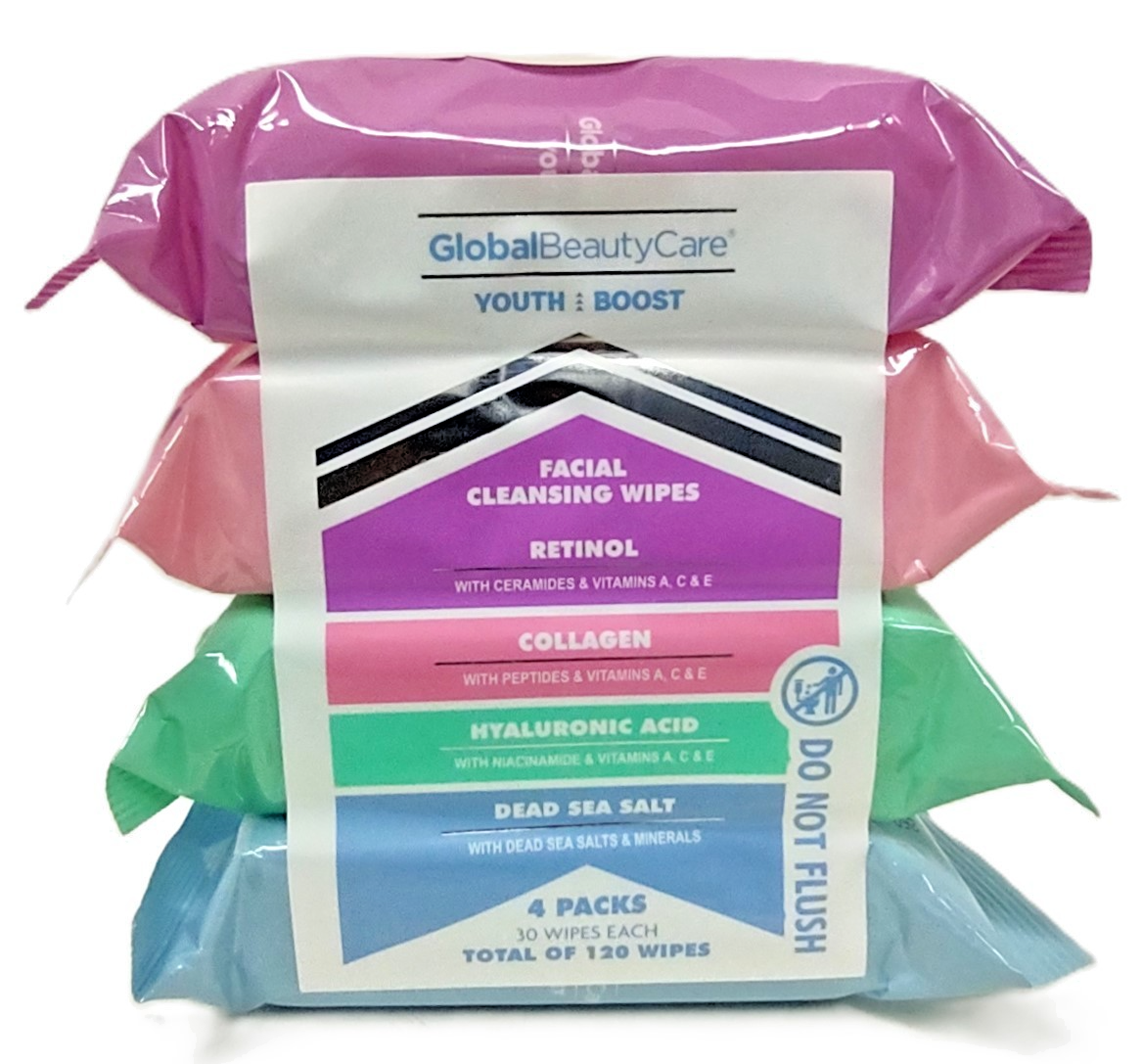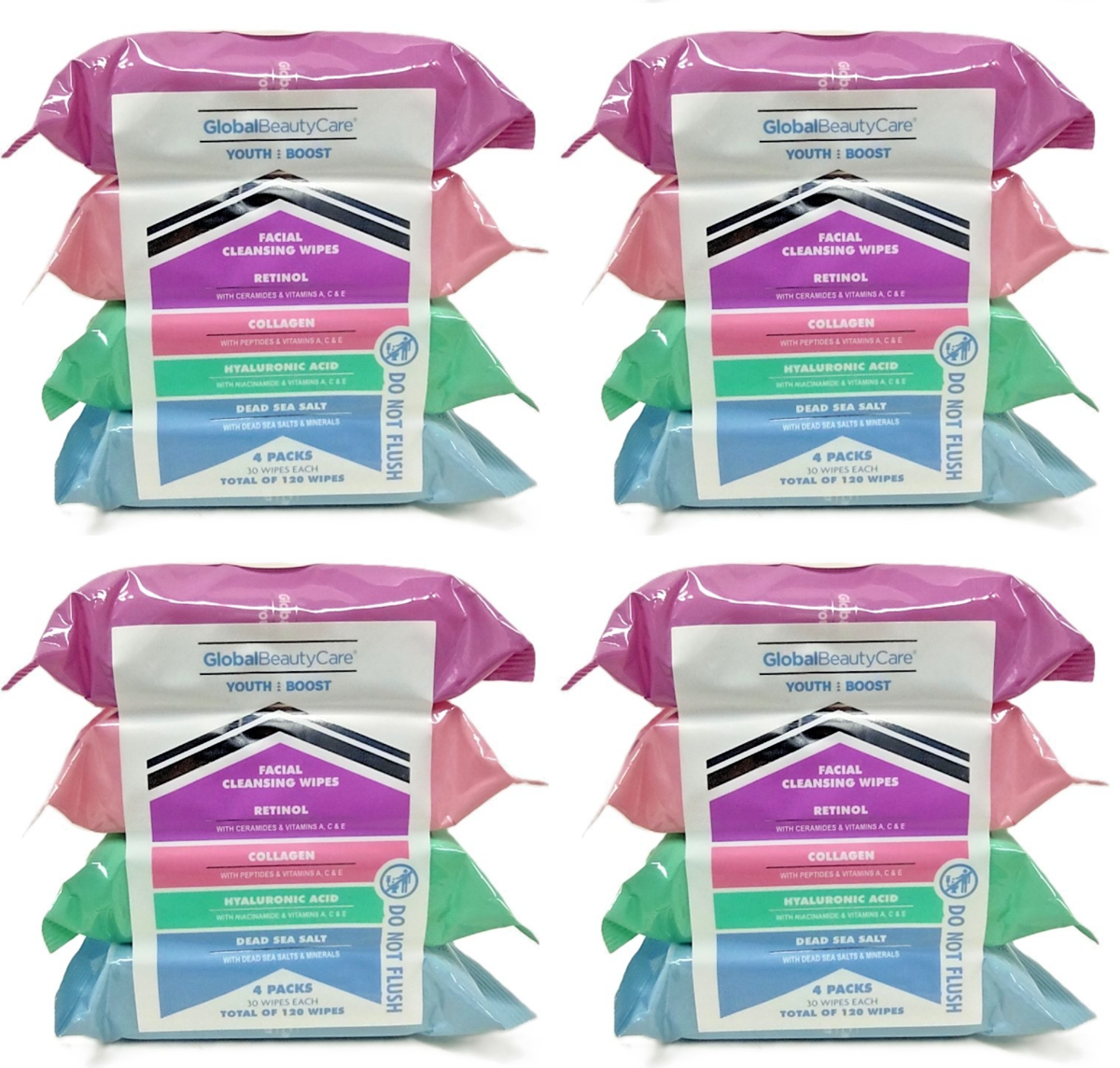 4 x 4 pk = TOTAL 16pk Global Beauty Care Youth Boost Cleansing Facial, Collagen,