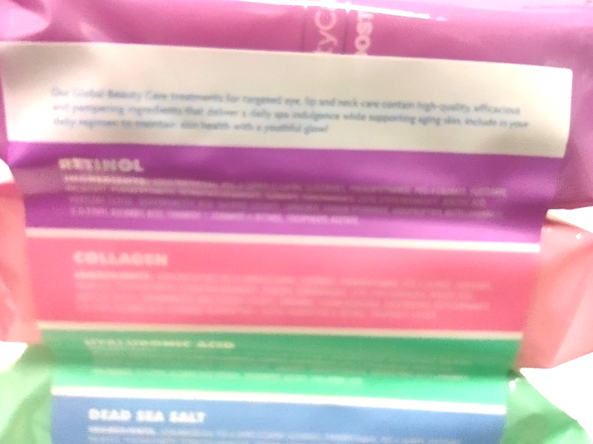 collagen, HYALURONIC ACID, NIACINAMIDE, retinol, Dead sea salt |