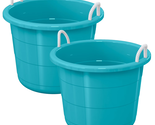 - 17 Gallon Plastic Storage Open Top Bucket with Rope Handles, Teal, 2 Pack