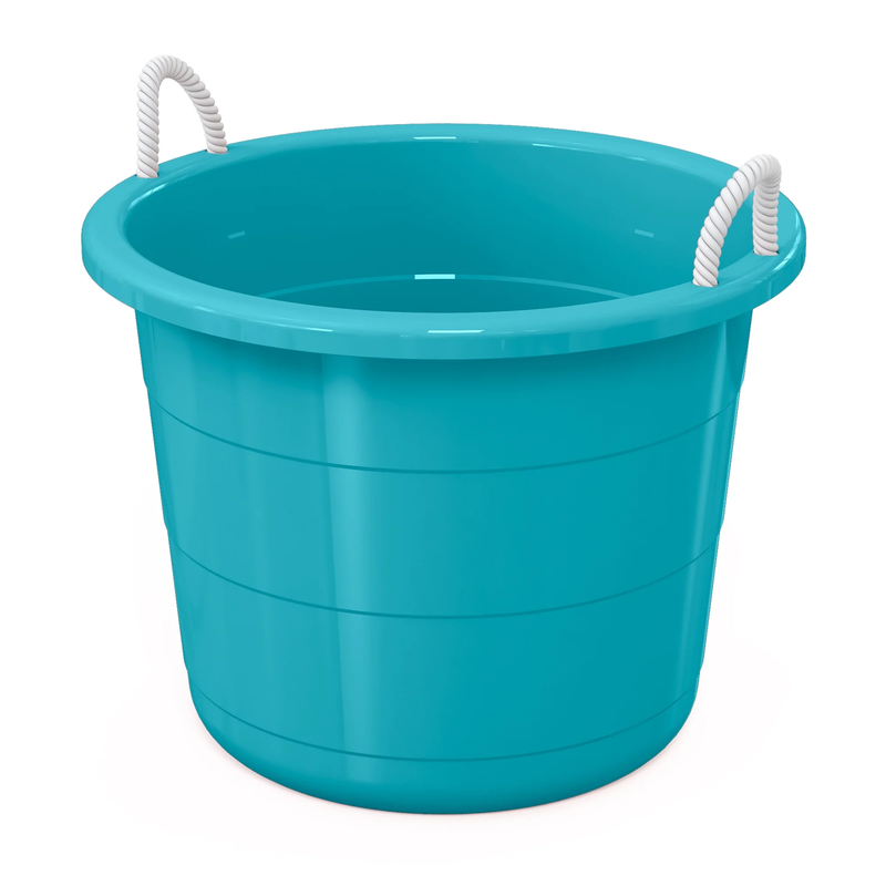 Spacious 17-gallon buckets is the perfect organizational solution for any space in your home, office, or garage Versatile and adaptable, these buckets are suitable and convenient for holding and carrying laundry, toys, beverages, plants, and more Flexible and sturdy material resists heat and protects against leaks, so you can leave a tub in your car, garden, or garage Plastic construction is flexible and durable while being lightweight, so you can easily transport and store Easy-to-grip, thick rope handles make transporting your items to and from any desired destination easy and hassle-free Material: Plastic Color: Teal Dimensions (L x W x H): 16.25 x 21.50 x 21.50 Inches Weight: 2.23 pounds Quantity: 2