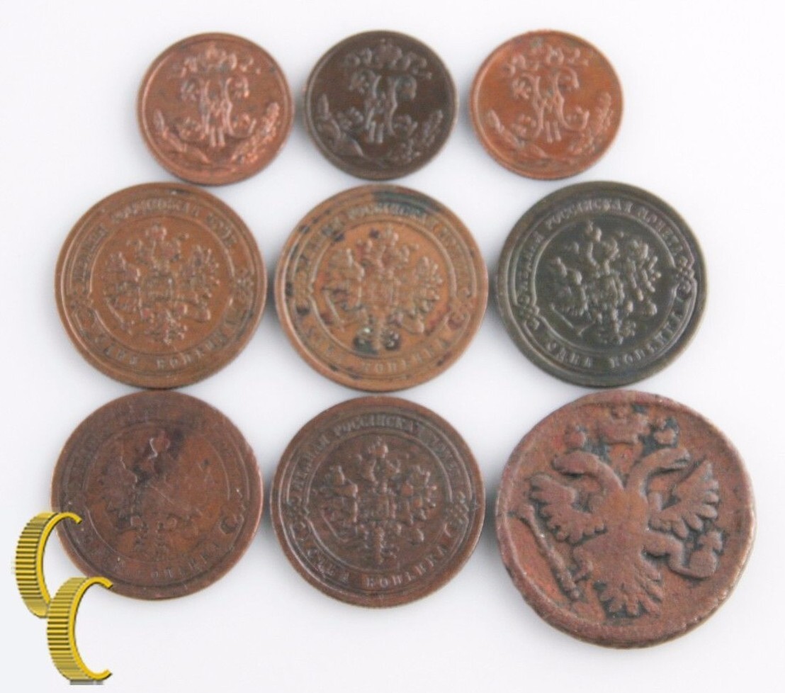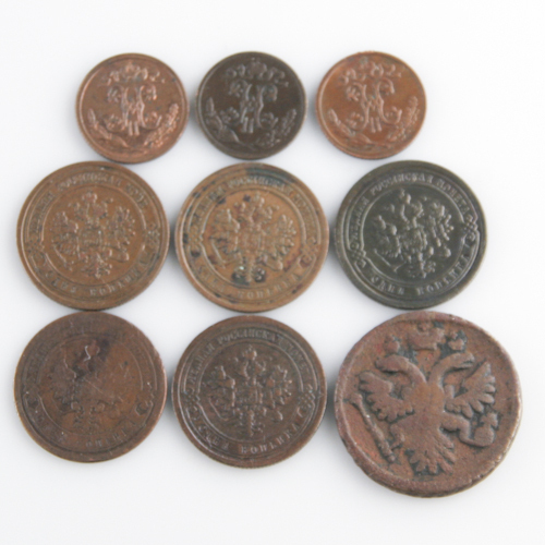 1737-1912 Russia Empire 1 1/2 Kopek Lot (9 pieces)