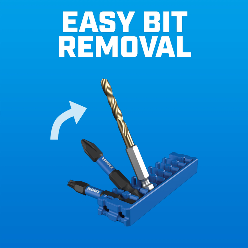 The NEW HART 35-Piece Drill and Drive Bit Set is ideal for drilling through PVC, wood, metal, and masonry. These bits can be organized, swapped out, or added with the included customizable case. Over 75% in savings compared to the average cost of buying each bit separately. This Assorted Drill and Drive Bit Set includes: (1) Customizable Case, (77) 1" Screwdriver Bits, (42) 2" Screwdriver Bits, (10) Nut Drivers, (1) Bit Holder, (23) Titanium Drill Bits, (6) Masonry Drill Bits, (4) Spade Bits, (7) Brad Point Drill Bits, (2) Sockets Adapters, and (3) 3-1/2" Drive Bits.