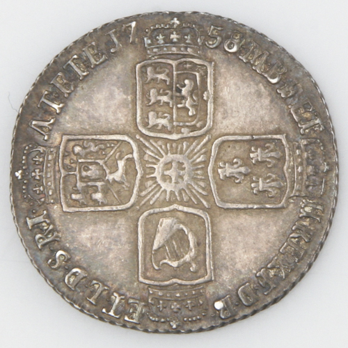 - 1758 Great Britain 6 Pence Exrra Fine+ XF+ George II England Silver KM#582.2