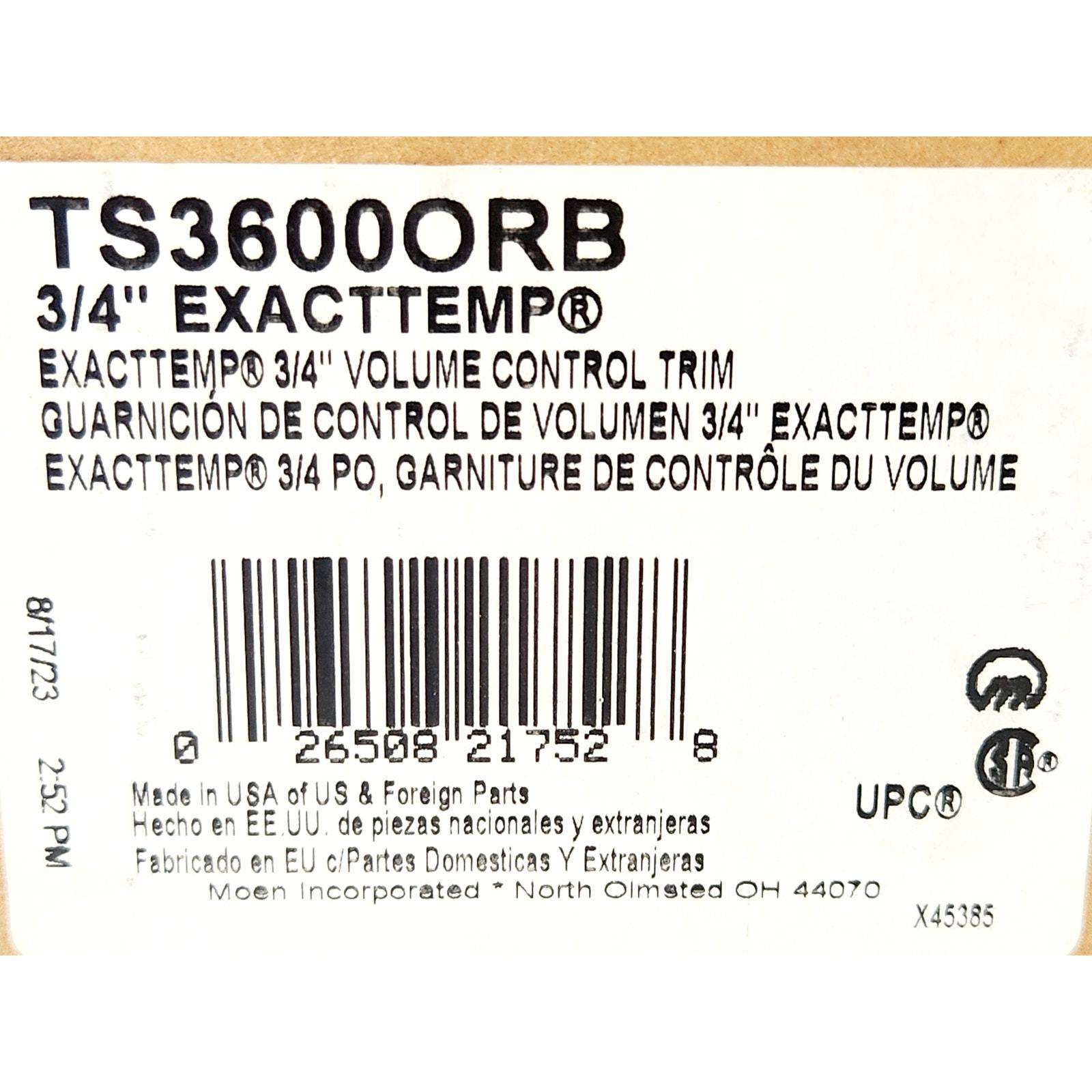 - Moen TS3600ORB ExactTemp Volume Control Shower Valve Trim-Oil Rubbed Bronze READ