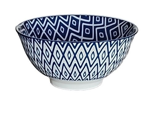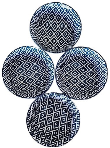 - Four (4) ONEMORE ~ Navy & White ~ 24 Oz. ~ Durable Ceramic Bowls ~ Stackable (2)