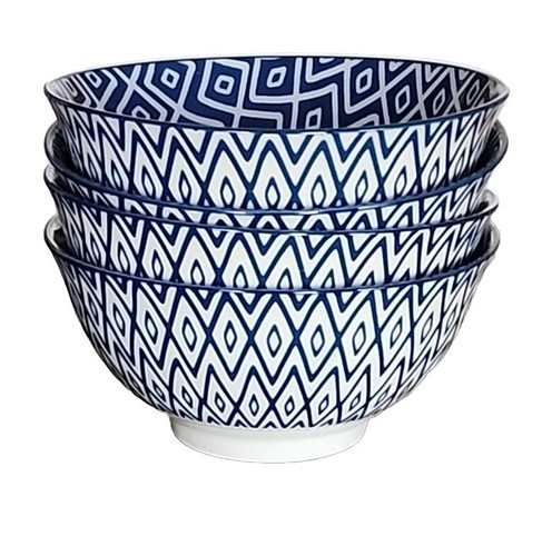 Four (4) ONEMORE ~ Navy & White ~ 24 Oz. ~ Durable Ceramic Bowls ~ Stackable (2)