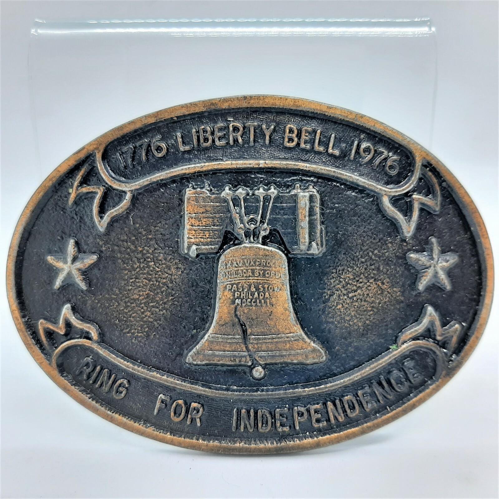 - 1776-1976 Liberty Bell "Ring for Independence" metal Belt Buckle