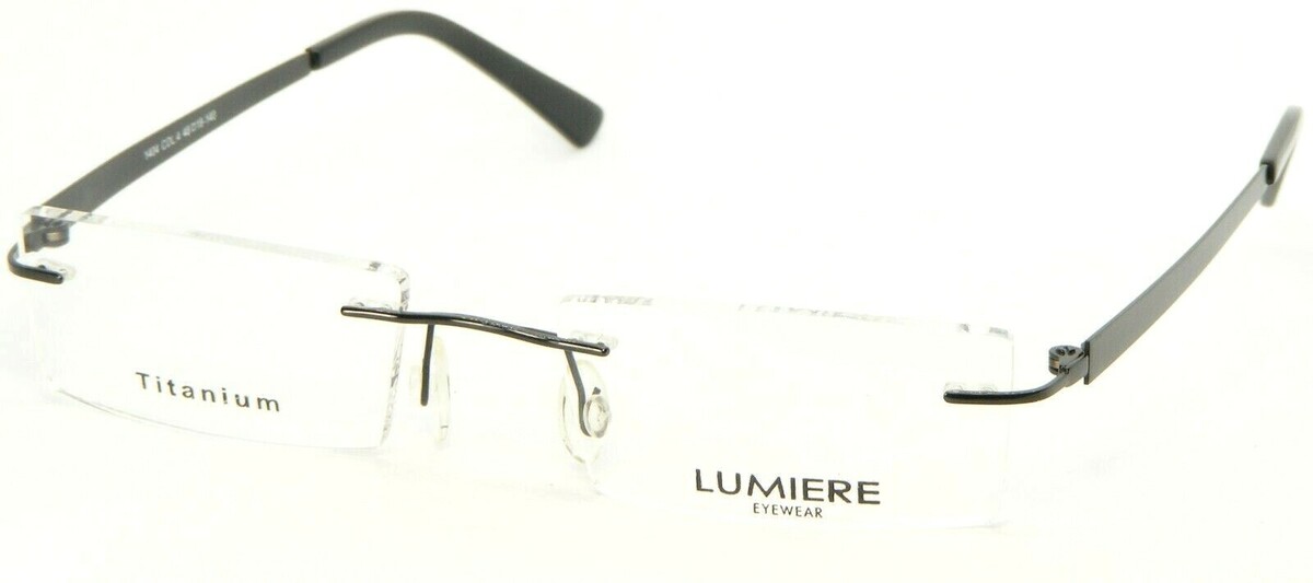 Nuovo LUMIERE Occhiali Italy 1423 COL.4 Gunmetal senza Montatura 48-19-140mm