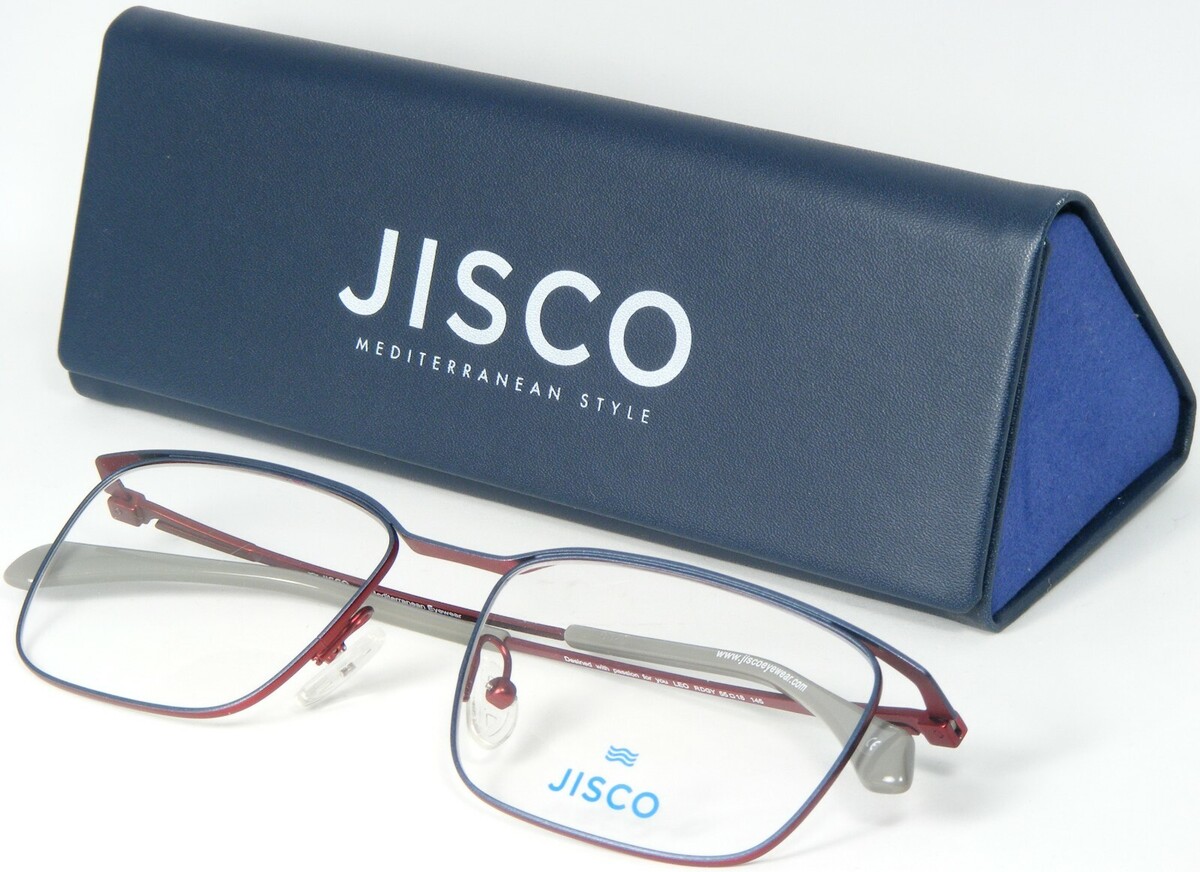 - JISCO LEO Rdgy Rot / Slate Blau Brille Titan Rahmen 55-18-145mm