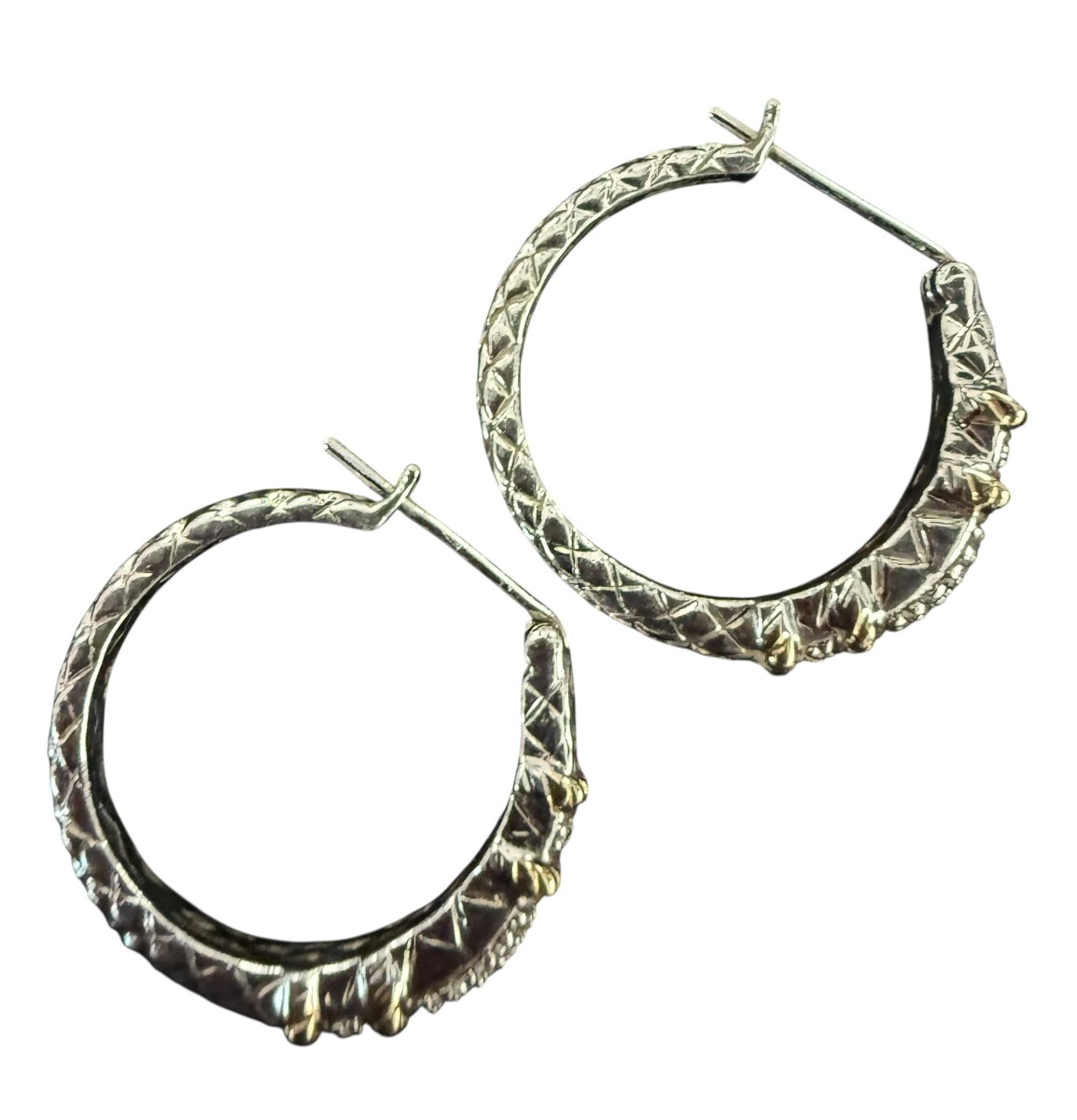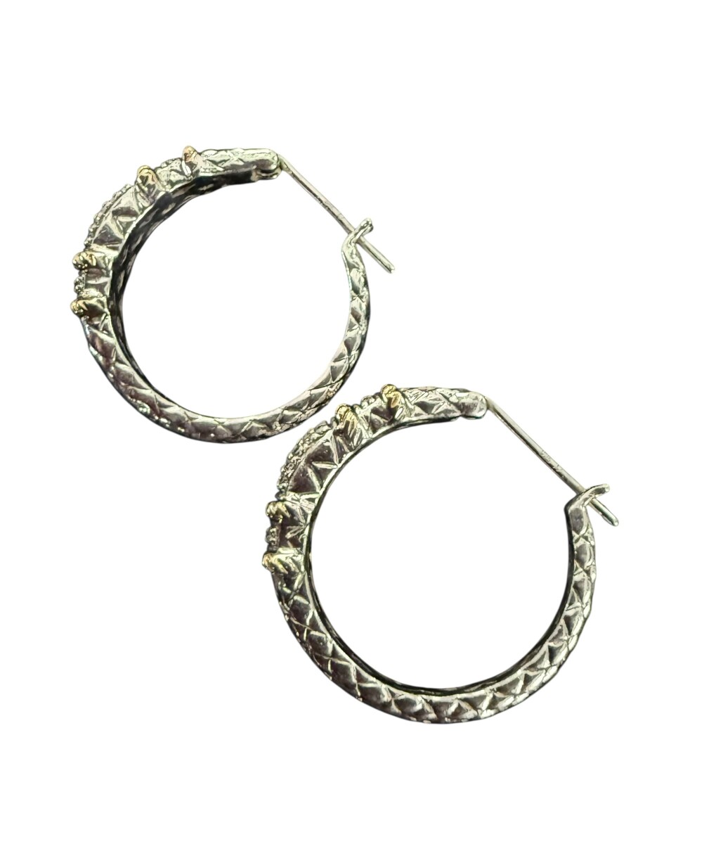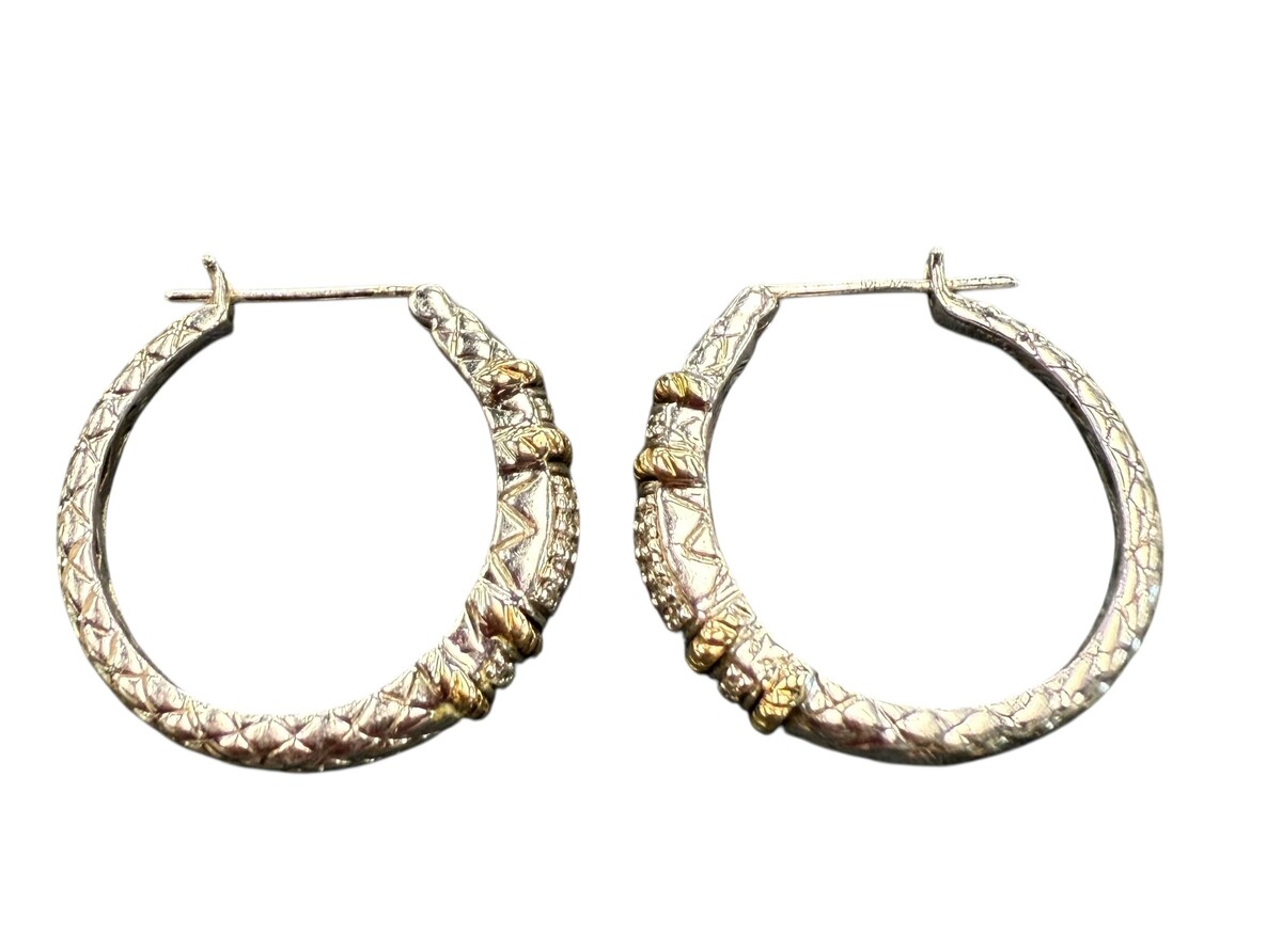 Type: EarringsWeight: 3.6Karat: .925Metal: White GoldGender: Women'sStyle: HoopSize / Length: .75"Owner applied: 925 14kCondition:Used