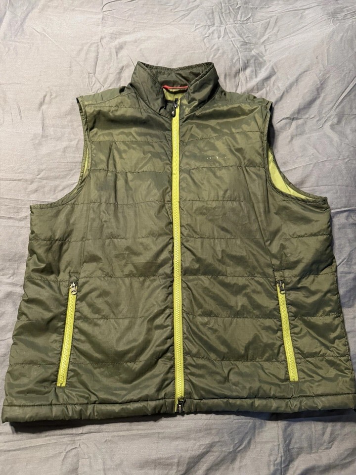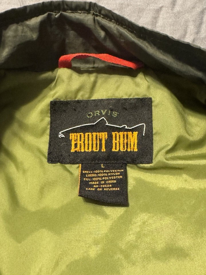 - Orvis Trout Bum Puffy Vest Green Quilted Nylon Zip Front Men’s Large