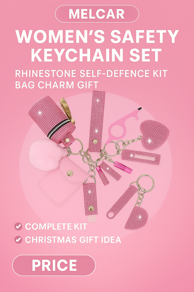 - 17pcs Women’s Safety Keychain Set | Rhinestone Survival Kit Multi-Function
