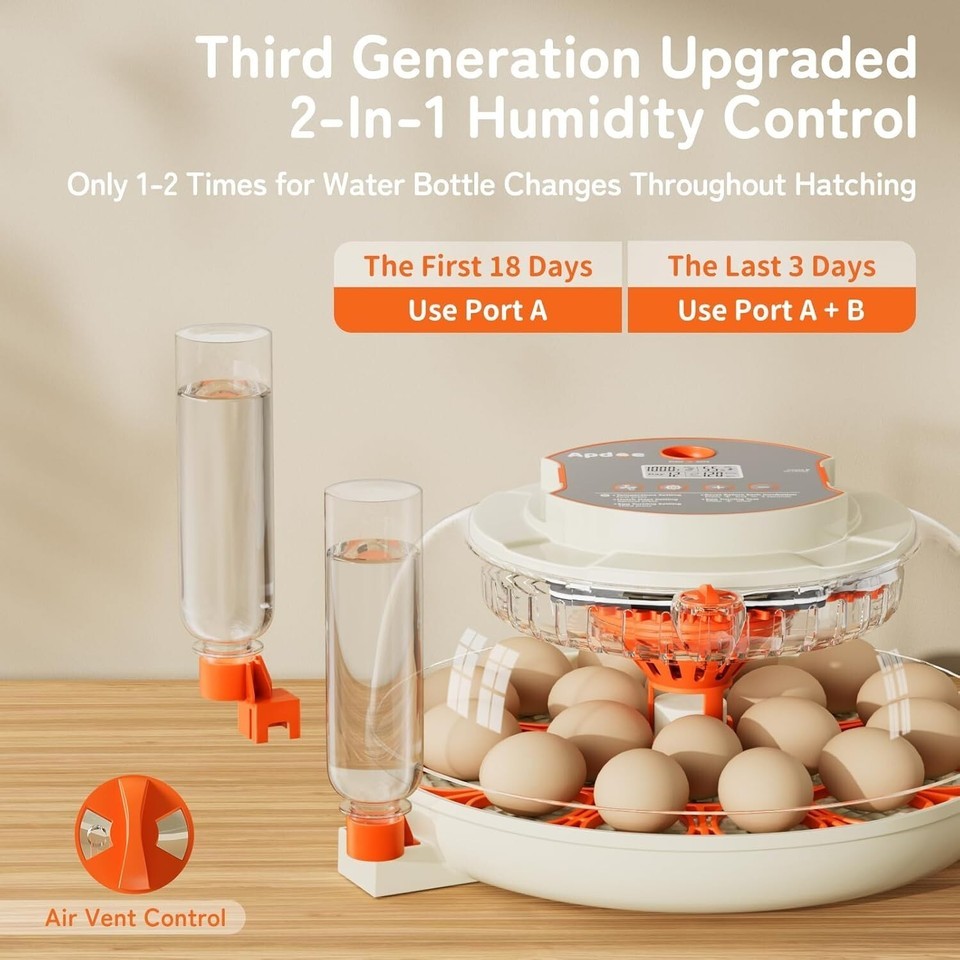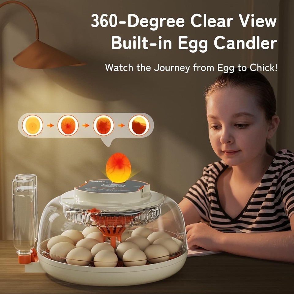 Reliable Warranty and Support: Comes with a 3-year warranty and lifetime after-sales support. Package includes everything you need to get started: incubator, 10oz water bottles 2, hatching guide, instruction manual, charger, large egg tray, and medium egg tray.