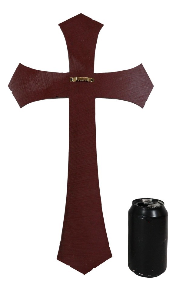 ? This Beautiful Wall Cross is made of polyresin, meticulously hand painted and polished individually. The art of creating a wooden finish to resin is a recently discovered technique which gives you the best of both worlds; the rustic natural feel and look of wood and the sculptural details that can only be achieved with resin. This sculpture will look new for many years to come, and the best part is it will not fade or crack/split (due to dryness) like wood does over a period of time.
