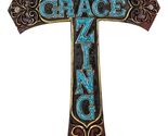 18"H Rustic Western Faux Wooden Amazing Grace Scrollwork Decorative Wall Cross