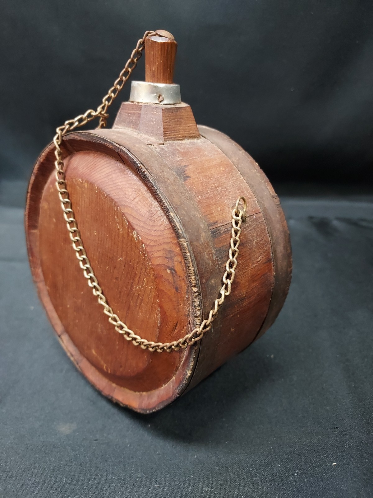 1800s Civil War Era Wooden Barrel Keg Powder Flask Or Canteen. Shipped with USPS Ground Advantage.