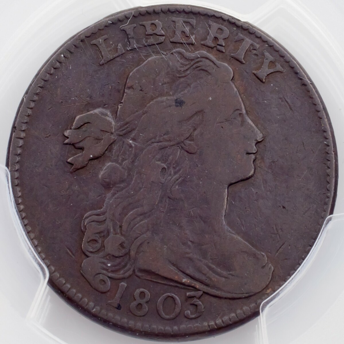 - 1803 1C Large Cent Graded by PCGS as F15 Small Date, small Frac Great Coin