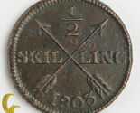1803 Suecia 1/2 Skilling en condicion XF, KM# 565