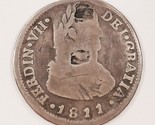 1811 Chile 2 Reales Moneda de plata en buenas condiciones con marcas de corte! KM 74