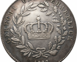 Scopri questa accattivante medaglia d'arte restrittiva Ludovico I di Baviera del 1828, un oggetto da collezione davvero unico che celebra l'eredita bavarese. Questo bellissimo pezzo presenta un profilo sorprendente del re Ludovico I, che regno dal 1825 al 1848 e trasformo Monaco in una rinomata capitale culturale. Il dritto mostra in modo prominente la sua somiglianza, circondato dal suo titolo reale. Il rovescio presenta un elegante stemma coronato incorniciato da una corona dettagliata, accanto al motto "Grecht und Beharrlich" (Giusto e persistente) e all'anno significativo 1828. Questo design storico riflette l'eredita duratura di un monarca dedicato all'arte e alla cultura. Come restrizione desiderabile, questo articolo offre l'opportunita per gli appassionati di numismatica e gli appassionati di storia di possedere un pezzo ispirato a un'epoca cruciale. La sua qualita a prova lo rende una straordinaria aggiunta a qualsiasi collezione. Un superbo oggetto da collezione, questa medaglia commemorativa incarna il significato storico e l'artigianato artistico. Perfetto per chi cerca un'opera d'arte vintage unica o un legame tangibile con la storia tedesca. Questo oggetto finemente dettagliato e un notevole manufatto storico e un must-have per qualsiasi collezionista serio.