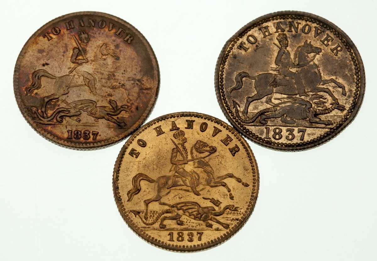- 1837 Great Britain Queen Victoria Cumberland Jack Token Lot of 3 "To Hanover"
