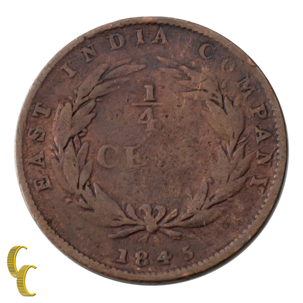 1845 SETRITS SECUSTLE East India Company (1826 - 1858) 1/4 centavo Km #1 VG Cond.