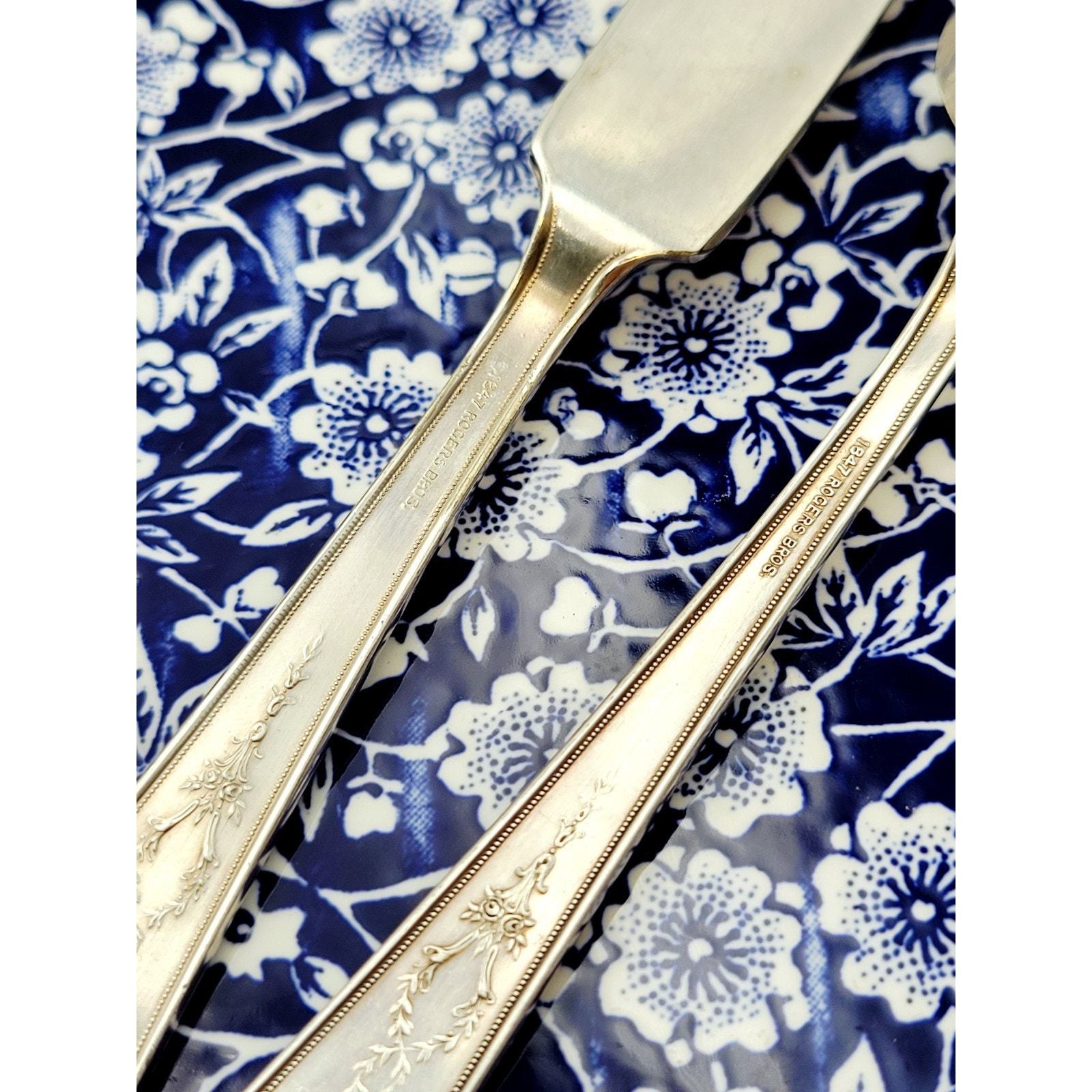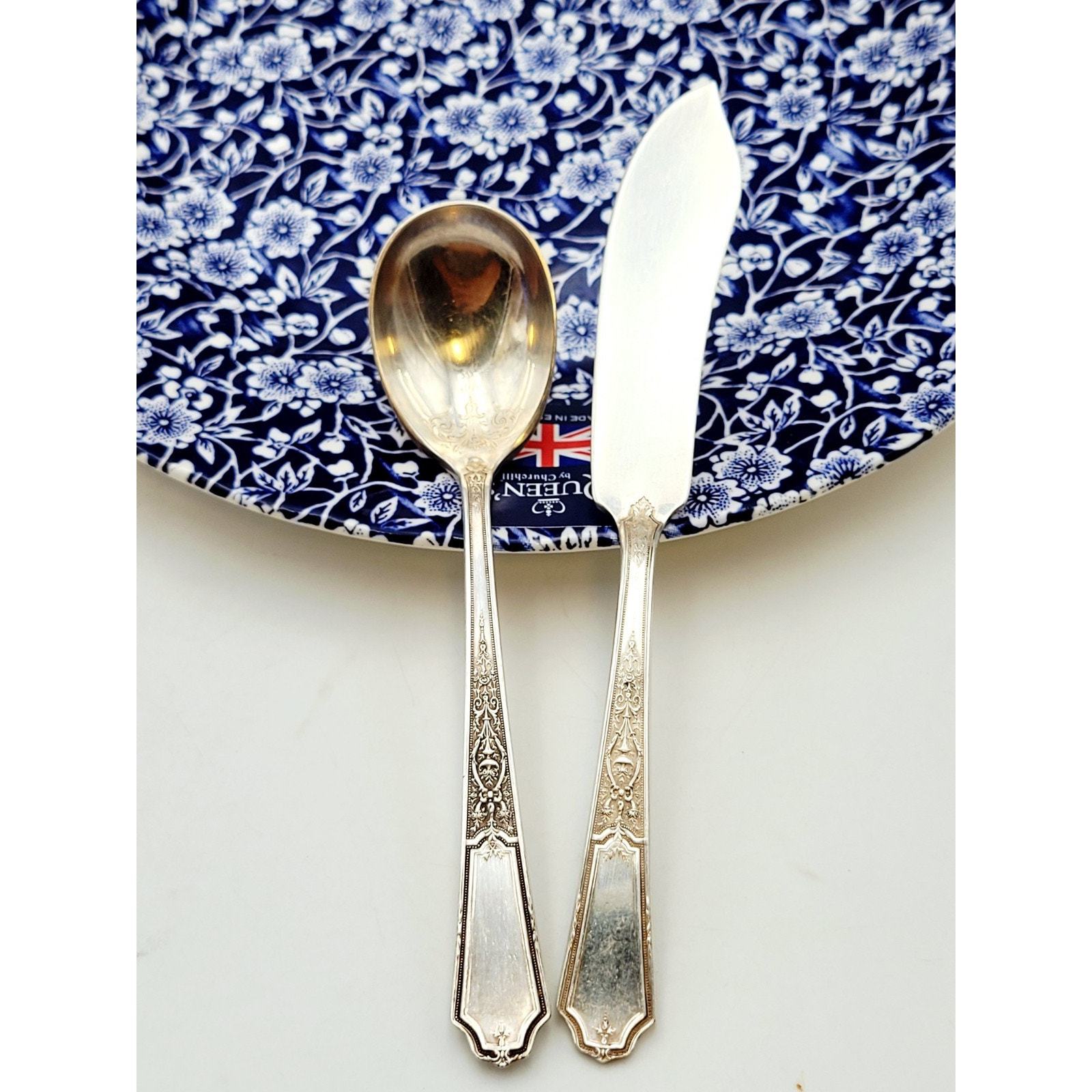 - 1847 Rogers Bros Ancestral Silverplate Butter Knive & Sugar Spoon Discontinued