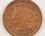 - 1848 1C Large Cent in Extra Fine XF Condition, Brown Color, Nice Detail
